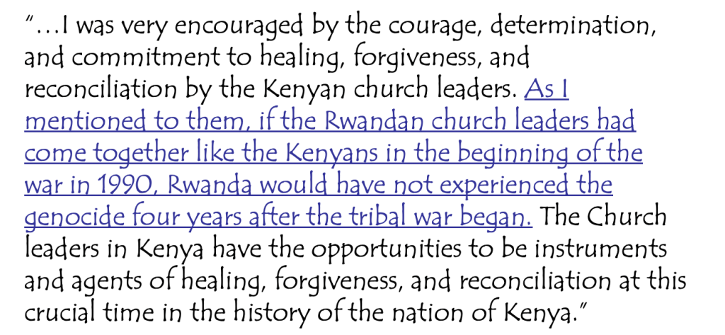 Does the methodology work? Yes. The path helped Kenya from erupting into genocide like Rwanda.